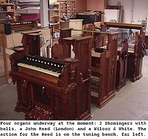 After some 40 years restoring reed organs as a hobby, Jim Tyler has, in early retirement, opened a 2500-square-foot facility devoted to the repair and refurbishment of reed organs, melodeons and harmoniums.